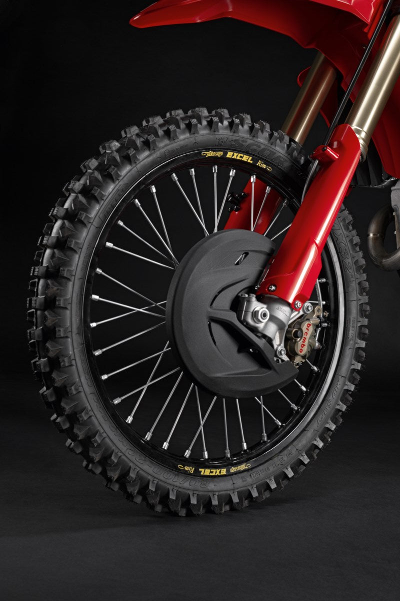 Made of plastic using the latest injection moulding technology, it's extremely light and protects the brake disc against stones and other solid obstacles. The supplied adapter makes tire changes and routine maintenance extremely easy.