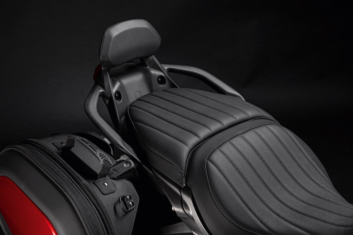 Made of genuine leather with fine finishings and a wider seat, it gives a sophisticated custom style without overlooking the passenger's comfort. Perfect in combination with the premium rider seat, it is the ideal accessory to complete an exclusive look with elegance and attention to detail.