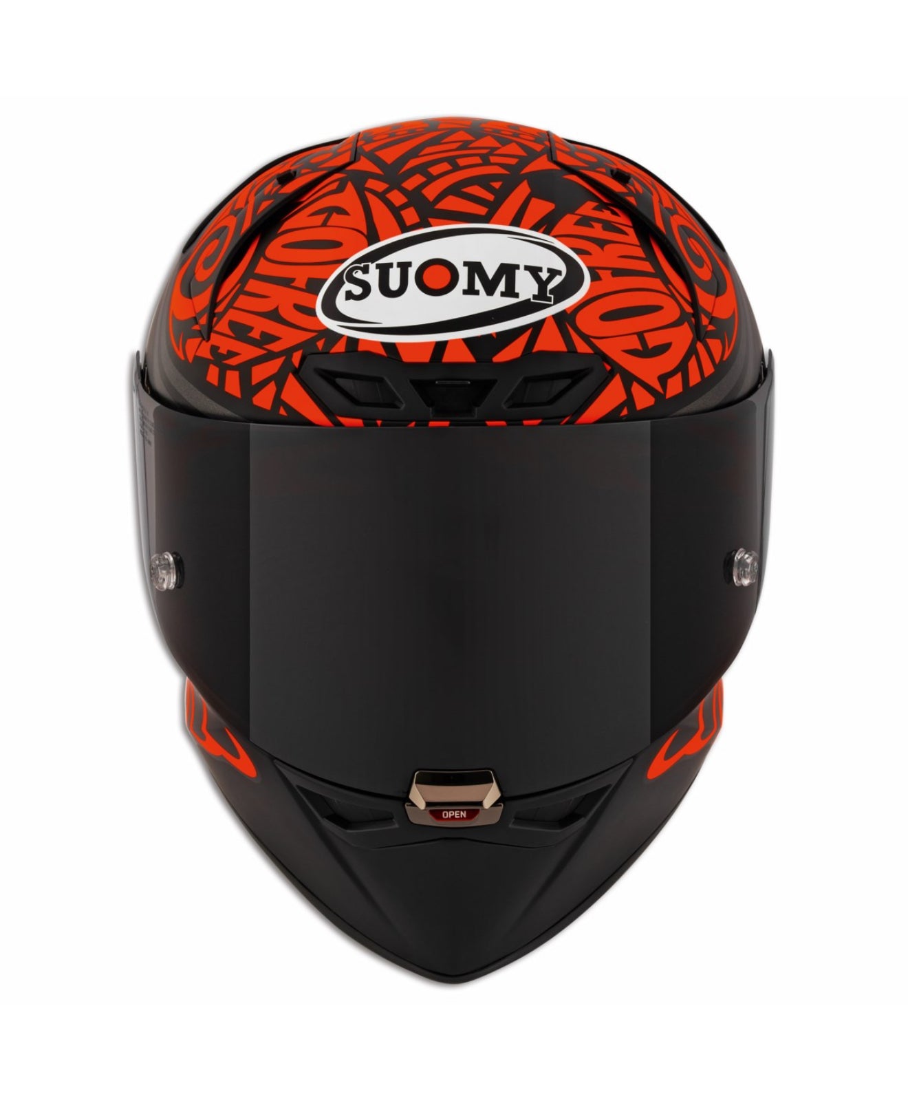 Step into the shoes of the famous racer Pecco Bagnaia with the racing inspired Replica Bagnaia helmet for sports use. The predominant Ducati red on the front and the graphics dedicated to the champion bestow a bold, adrenaline-driven look; those who wear it know what they want and know how to achieve it. The shell is made of TRICARBOCO, a mixture of carbon fiber, with various weights and breaking loads, and aramid composite material, which makes it possible to produce a shell that is lightweight yet impact resistant. The inner shell is made of a differentiated density polystyrene, designed to allow a gradual and progressive absorption of the impact force generated by a collision. The inner liner is made of anti-bacterial treated polyester fabric and has removable, washable and replaceable inner elements and cheek pads. The PINLOCK Max Vision 120 injection polycarbonate visor is in optical class 1 and equipped with a "Racing Lock System" which reduces the possibility of it detaching in the event of a fall. To complete the equipment, there is a D-ring strap closure and front and side air vents which, together with the ventilation system allow for efficient air flow exchange and promote well-being and lucid riding. A high-performance, aerodynamic racing helmet that will allow you to enjoy the thrill of a MotoGP, ensuring safety and comfort during every lap of the track.